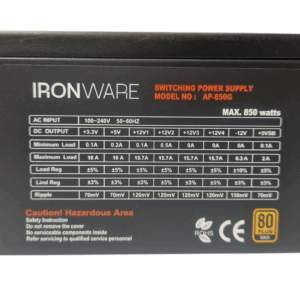 ALIMENTATORE 850W 80+ GOLD – IRONWARE AP-850 MOD.